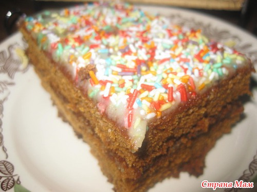 Остывает он быстро, режу на две части, смазываю кремом и складываю, друг на друга и украшаю.
