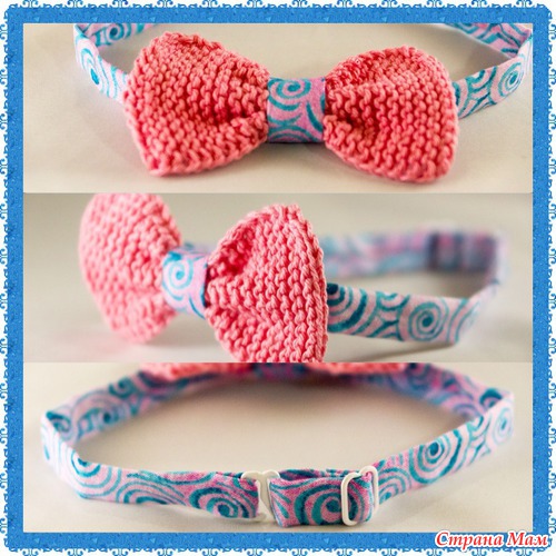 Ну и буквально вчера родилась новая идея сделать вязаный бантик, подобное исполнение я уже встречала в интернете, поэтому быстренько родился еще один вариант галстука!) Сам бант связан их хб ниточек, к сожалению не осталось названия, но ниточки довольно плотные.
