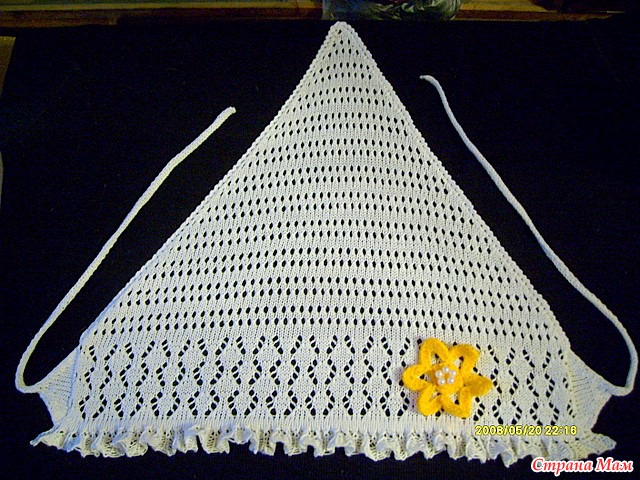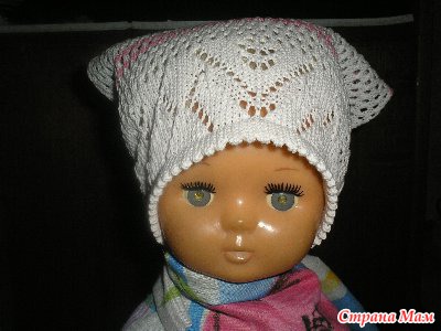 На лето, из хлопка вязала различные шапочки и косыночки--ажурные. Делала их разными, и рюшей к лицу и без нее. Очень удобно--и солнышко не печет, и за счет дырочек ажура-голова дышит.