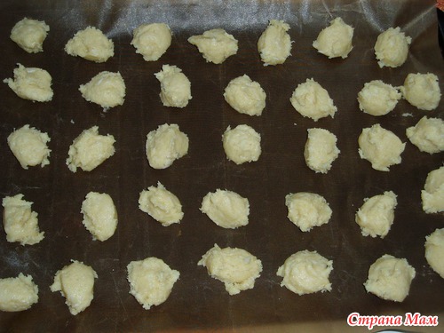 масло растереть с сахаром, добавить яйца, кокос, муку, соду, ваниль. Тесто получится не крутое, формировать не большие шарики. Печь 15-20 мин при 180С