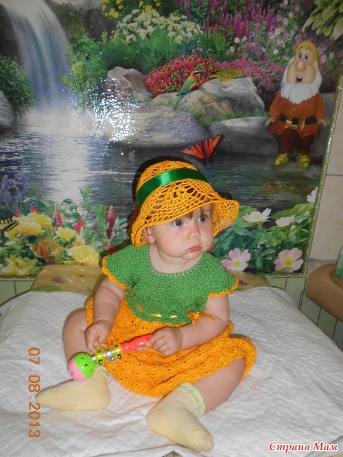 И норовила стащить шляпку, которую бабушка вязала впервый раз. В результате все набекрень!