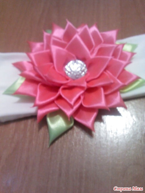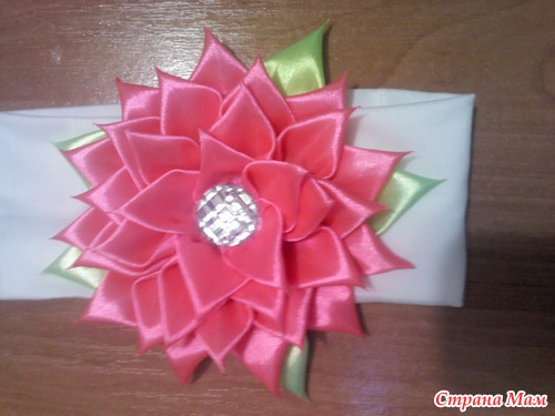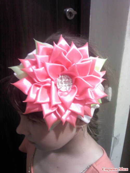 Сделала свою первую повязочку для дочурки в стиле "Канзаши". Немножко кривоватая вышла