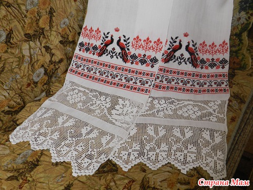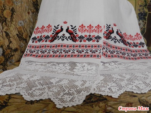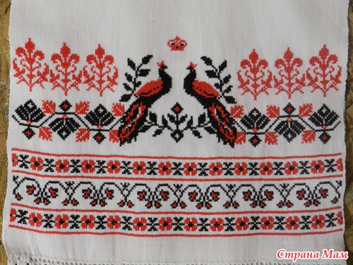 Выбирала, в первую очередь, по красоте, чтобы нравилось. А по значению узоров вот что получается: Павлин/жар-птица – в русской вышивке олицетворяет семейное счастье; ромб - славянский символ Богини Земли, солнца, охранный знак, приносит счастье, олицетворяет плодородие; звезды — славянский символ небесного огня, разума и просвещения; ну и венок с короной вышиваются именно на свадебном рушнике.