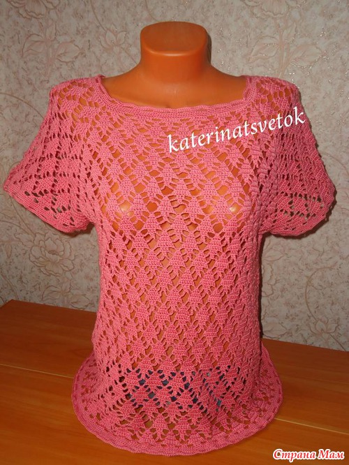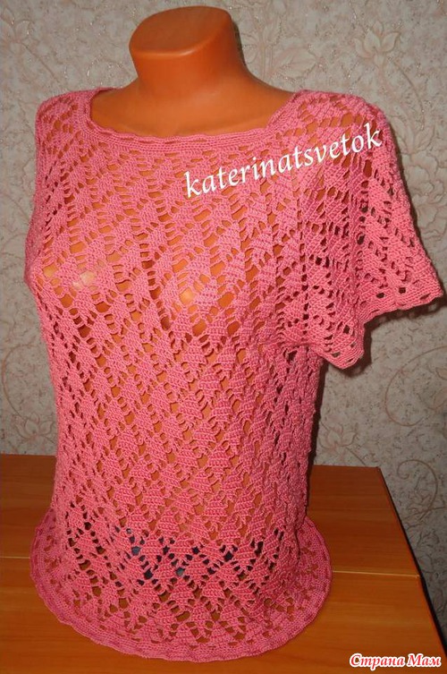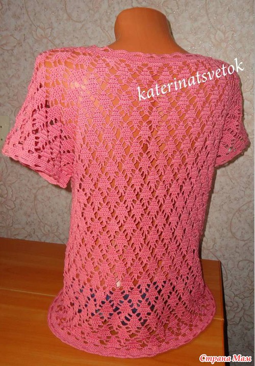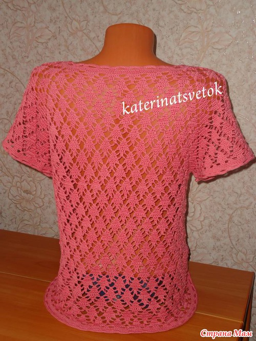 Смущает , когда я начинала вязать, даже протестовала, что уж очень дырявая и всё будет видать. Но я думаю, она всё равно будет носить с маечкой или сошью ей что то вроде топика.