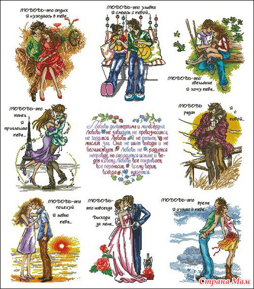 Эта схема вышивки содержи в себе 9 отдельных фрагментов.