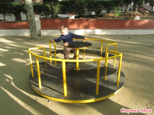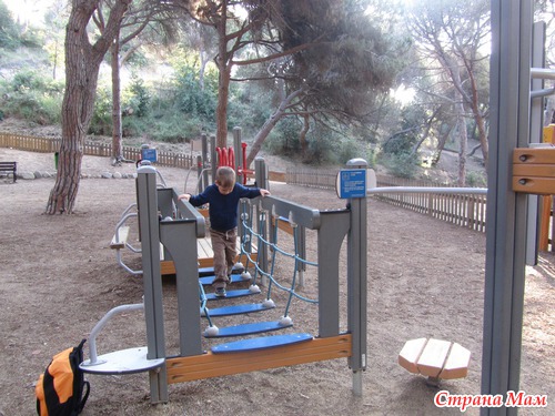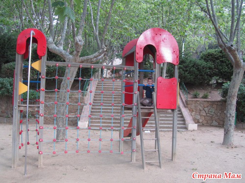 На воротах парка – Герб Калеи… От ворот ведет аллея с огромными деревьями… в Парке очень красиво, несколько детских площадок и развлекаловками для малышей – на каждой площадке опробуем карусельки – качельки, тарзанки, турнички, лазилки для ориентирования и т. п. Сынуля доволен, весело смеется)))