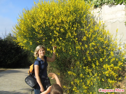 По пути зеленеют разные необычные кустики, цветущие красивыми цветами… Сначала даже не понимаем, откуда такой обволакивающий, дурманящий запах -…. а вот оказывается откуда… это пахнут так вот эти желтые кусты… И потом мы их видели везде… но долго около них находиться как то сложновато)))) и как они растут около домов?!