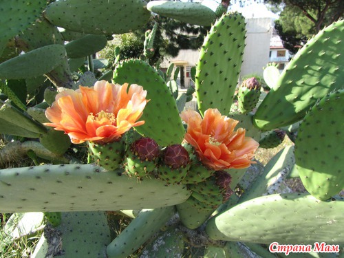 Но очень красивые… такой яркий насыщенный цвет… а тут же сиреневые волны бугенвиллеи, каменная роза огромных размеров в чьем-то садике, пальмы, громадные кактусы, растущие по обочинам с цветами и плодиками)))) Красота!