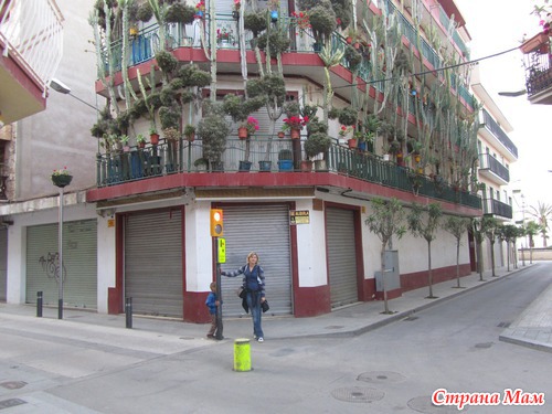 Домики все разные, с красивыми балкончиками и цветами… Проходим мимо кактусового дома – на высоту 3 этажей вверх по балконам взбираются колючие жители))) всякие разные… Такие огромные… а у нас такие в горшочках растут… совсем карлики получается))))