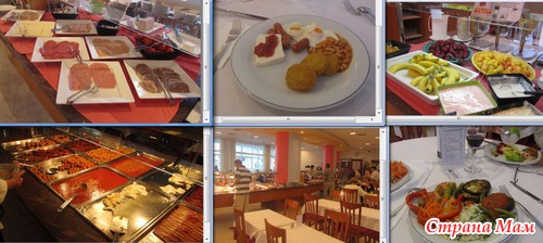 За время нашего отдыха питание было отличным – много фруктов (арбузы, дыни, черешня, бананы, клубника, персики, абрикосы, инжир, финики, и т. п.), йогурты вкуснющие, по 3 вида мороженого, десерты и пирожные, разнообразное печенье и пироги… Очень много разных солений – особенно понравились маринованный белый лучок и ассорти на шпажках из огурчиков, лучка, перчика и оливок! Ням! Причем я вообще до этого не любила оливки, а тут ела стыдно сказать килограммами… Вернувшись домой не удержалась и купила баночку маринованных оливок – тьфу… гадость редкостная… по сравнению с тем чудом, что мы ели там… чем то они отличаются)))