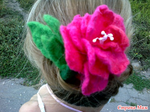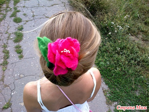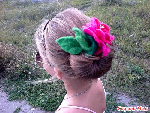 Вот такая заколка твистер с цветком. Но в процессе эксплуатации поняла, что нужно делать ее длиннее. В следующий раз исправлюсь)))