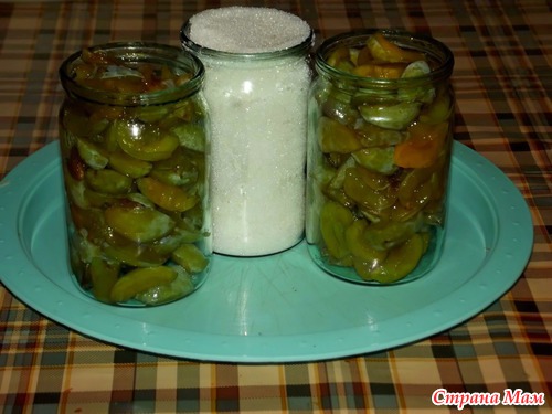 Компот из слив. В качестве красителя использую замороженную чёрную смородину или замороженную вишню. На 3-х литровую банку сахара кладу 200 гр.