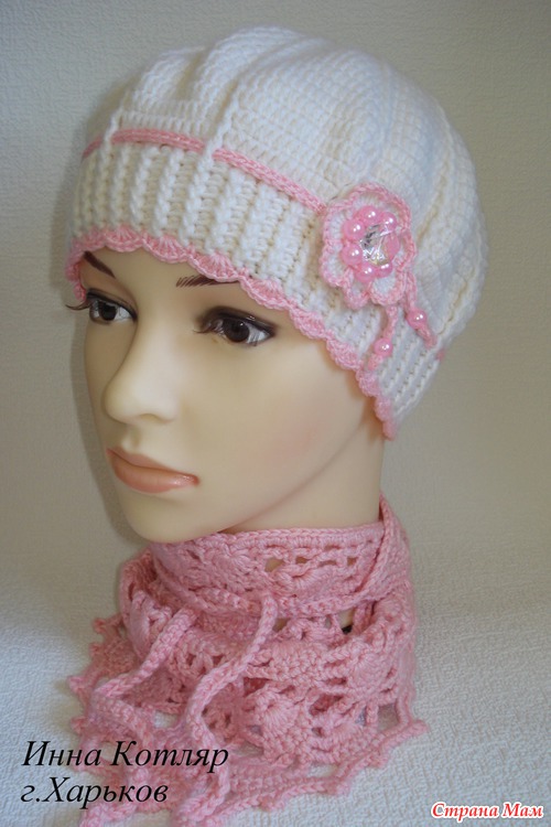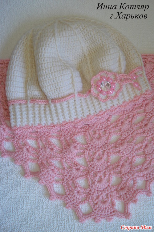 Берет связан из Мерино де люкс, по мастер-классу от Голубки. Для крестницы, пока кума еще думает- нужен им шарфик или бактус, я сделала фото с бактусом из зимнего комплекта https://www.stranamam.ru/post/6102727/