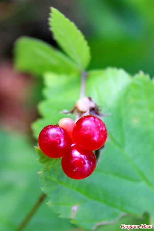 А ещё мне попались малюсенькие ягодки костяники