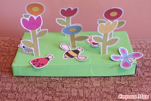 Хотела изначально сделать сенсорную коробочку с насекомыми, но что-то в этот раз лень было красить рис. Вместо этого сделала вот такую полянку. Андрюшка поиграл с ней немножко. Давала задания типа посади божью коровку на желтый цветочек и т. д. А потом решила превратить полянку с букашками в тренажер для развития дыхания. Мы недавно начали проводить занятия по развитию речи и он нам очень пригодился.