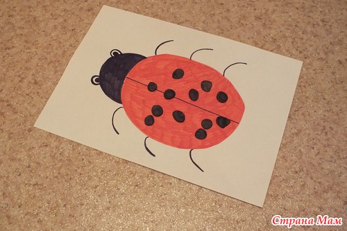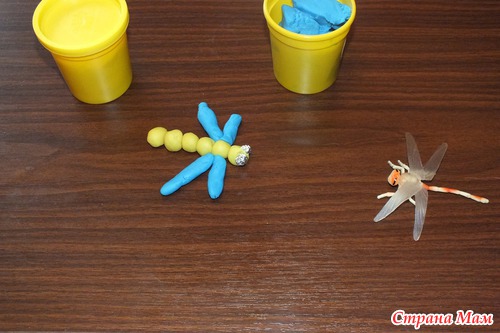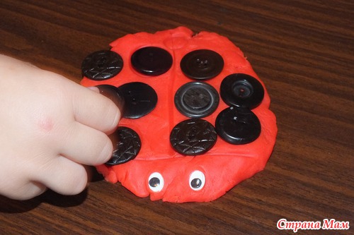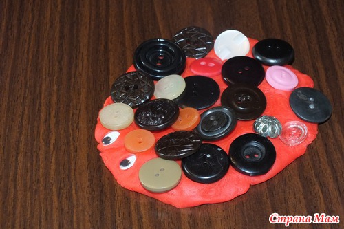 Еще лепили стрекозу и делали божью коровку из теста для лепки и пуговиц.
