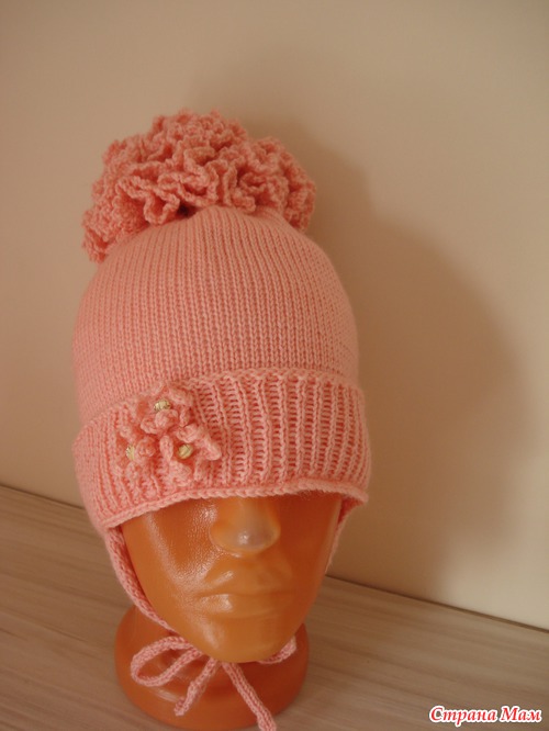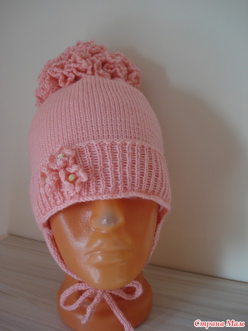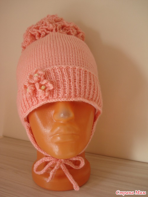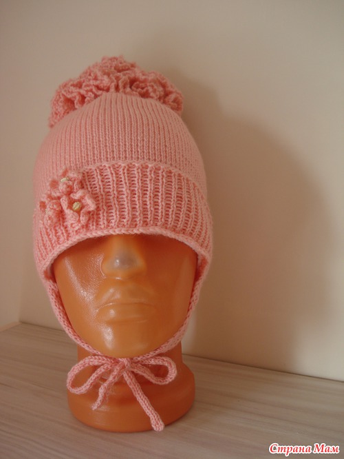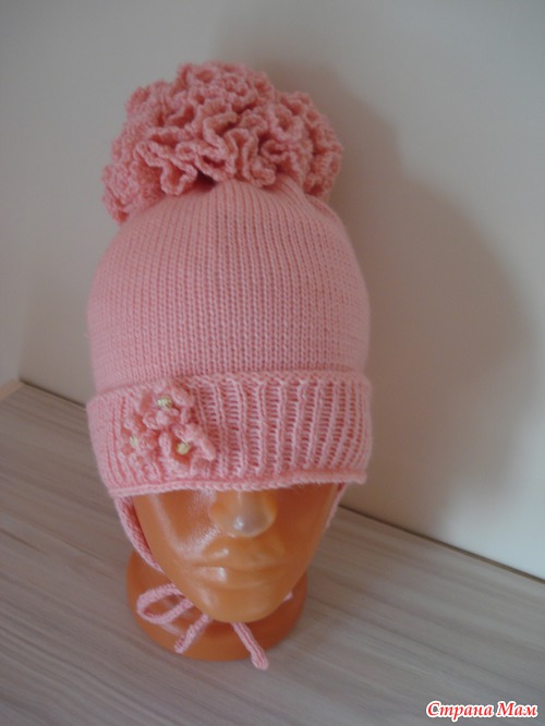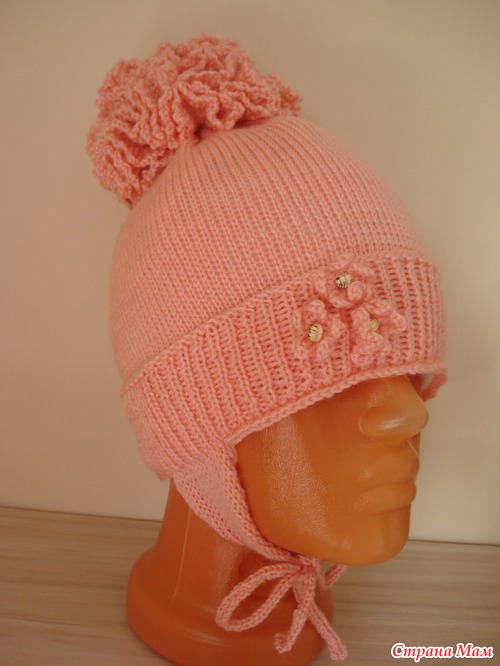 Подробности: Сначала связала образец, высчитала, рассчитала на ОГ. Вязала резинкой 1-1,(поднимала вручную) Далее гладь до нужной длинны. И в последнем ряду сняла на спицу и провязала по 2п вместе и стянула. Потом ушки по 20п 5 рядов просто далее убавки через ряд и когда останется 4 петли вязать шнурочки. Помпон вяжется как Пион называется. набирается по середине петли и по 3-4ст/с/н в каждую петлю так 3-4 ряда последний ряд 3воздушные пели 1ст.б.н......Вроде все. А вшить флис.