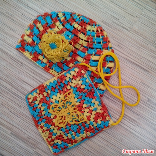 Принимайте! Беретик и сумочка из весёленького "Камтекса"
