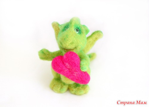 Закончился у меня сегодня дракоша. Смешной, уютный и безобидный С сердечком в руках Тонирован маслянной краской. Глазки расписывала акриловыми красками и покрывала лком. Так как я начинающая в этой области, мне интересно ваше мнение..
