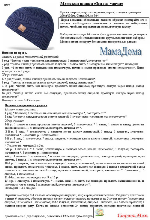 Шапка Зигзаг для Него, вязание он-лайн.