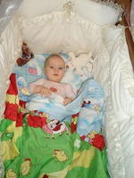 У меня никакой самодеятельности, консультировалась у знакомого педиатра, она нам разрешила тонюсенькую совсем, на ней и спали. А вообще малыш предпочитает мою подушку с бамбуковым волокном.