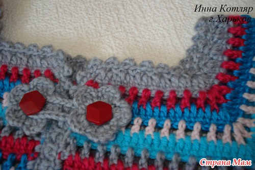 Жилет для девочки 5 лет. Были использованы остатки 5-ти цветов, алара, джинс, фристайлл в 2 нити, мерино булки размотана на 2 нити. Задумывалась кофточка с рукавом 3/4, но нехватило ниток...(((