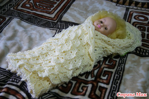 Пряжей Nako Beby, крючок № 4. Ушло 12,5 моточков. Размер 105*105см. Плед может быть использован как оригинальный подарок к рождению малыша. Так же можно использовать как пледик на кроватку или в коляску.
