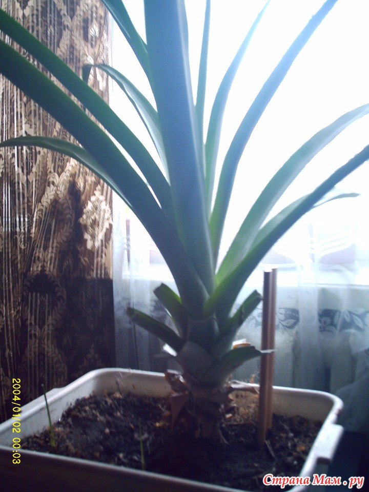 Самое главное – он не должен быть проморожен. Купленные зимой соплодия чаще всего какое-то время были на холоде, и их хохолки не годятся для укоренения. Лучшее время приобретения – лето или начало осени. Выбирайте хохолок с неповрежденным центром, сочными зелеными внутренними листьями.