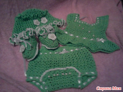 вот связался такой комплект для малышки- подруга в начале августа родила, подарочек вручен и им остались оочень довольны. вот теперь и вам хвастаюсь. взалось крючком, нитки пехорка жемчужная, ушел моточек(100гр) зеленой и остатки белой( меньше половины моточка) Читать полностью