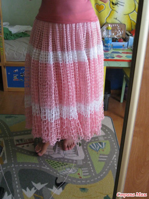 В итоге заказчица попросила другую юбку, а что с этой делать, ума не приложу. Пряжи на нее ушло уже около килограмма. Остается только довязать и самой носить, вряд ли ее кто-то захочет купить.