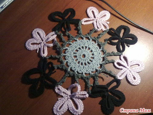 сначала колечко из 5 петель. потом 15 воздушек и замкнула в центр и так пять лепестков. затем как ты и писала. но каждый лепесток заканчивала между лепестками соединительным. мне так больше понравилось.
