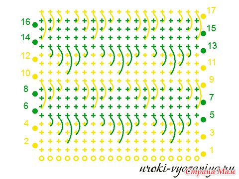 Так мы вяжем до конца ряда, согласно нашей схеме.