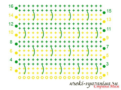 Так мы вяжем до конца ряда, согласно нашей схеме.