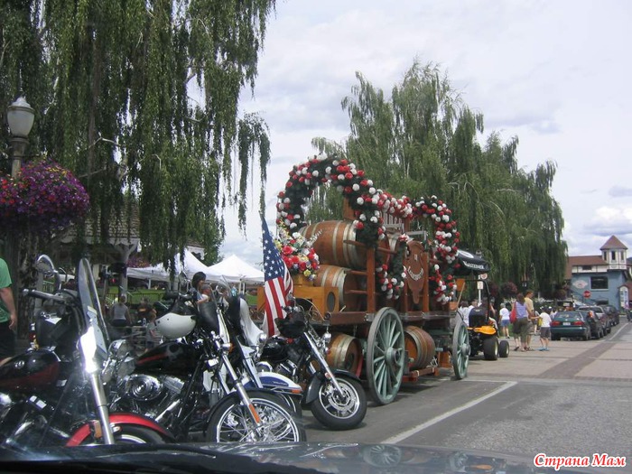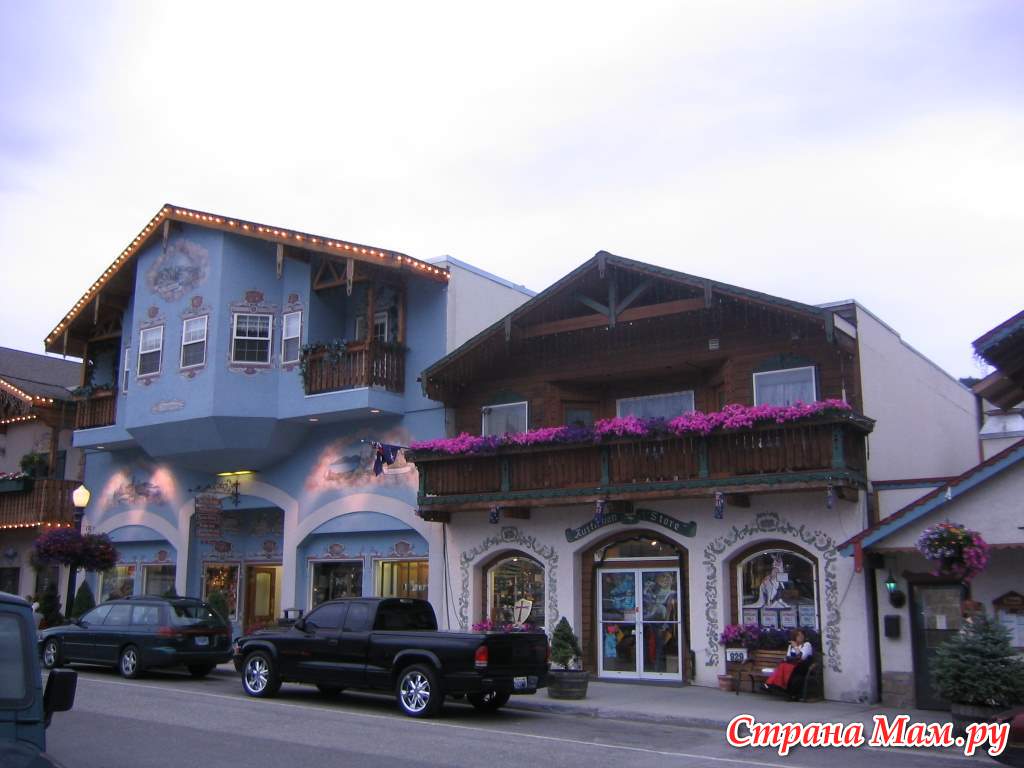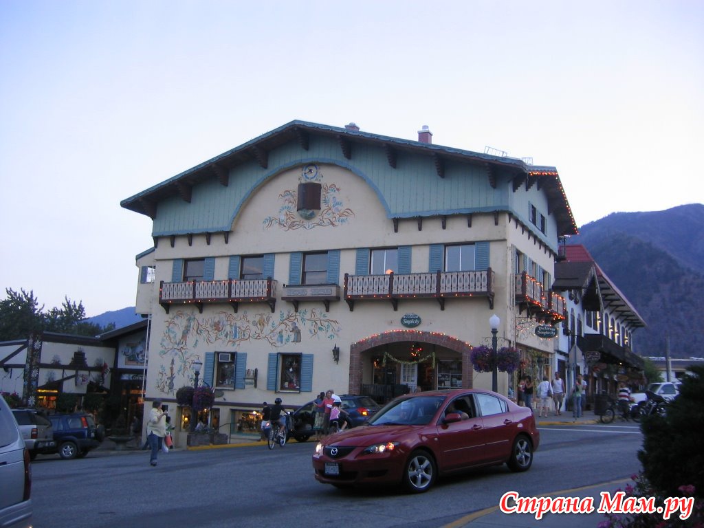 Я вчера не фоткала в Ливенворсе (Leavenworth, WA). Но нашла фотки прошлых лет летом, когда тоже там обедали после Челана. Мы любим там обедать. Раза 3-4 просто в выходной ездили туда пообедать в ресторанчик за эти годы. Тут не далеко, от нашего дома около 100 миль = 160 километров туда, всего 2 часа езды в одну сторону.