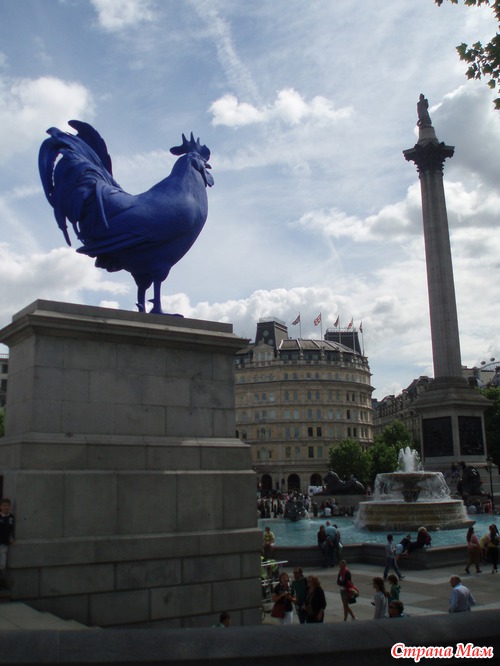 Скульптура синего петуха работы немецкой художницы Катарины Фрич на Трафальгарской площади.