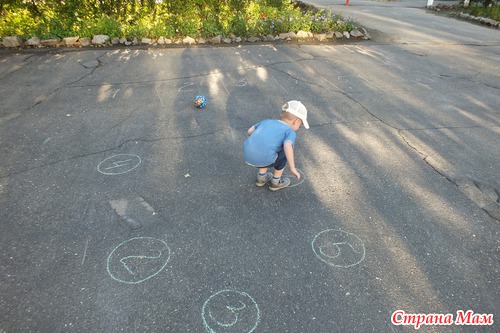 Катаем мяч по дорожкам.