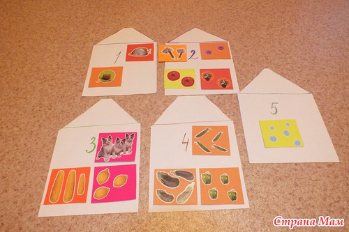 Итак, на этой неделе сделала сыночку карточки для счета. Для этого мне понадобились наклейки и цветной картон. Карточки распределяли по домикам.