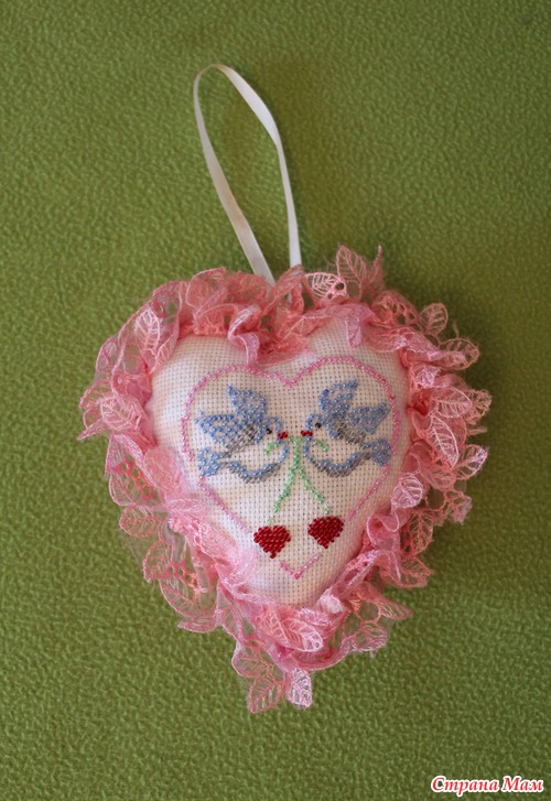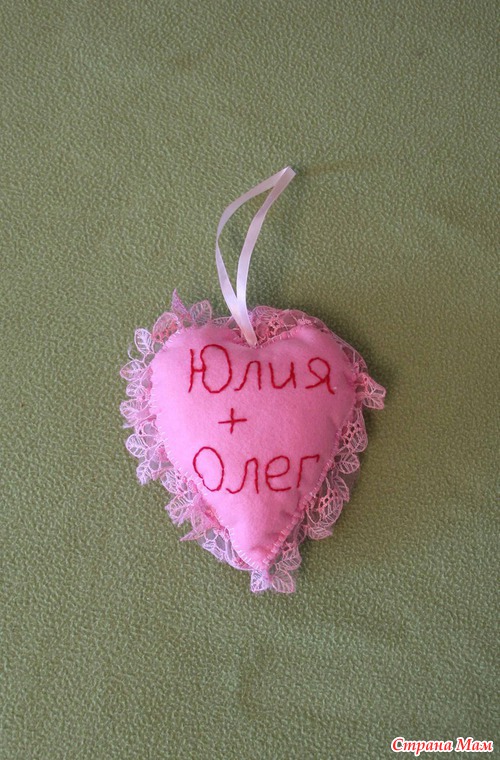 Это сердце вышитое Катюшиными ручками для меня и Олега. Оно именное и от этого в двойне приятно