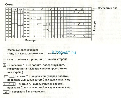 Рельефный узор: вяжите по схеме в соответствии с инструкцией.