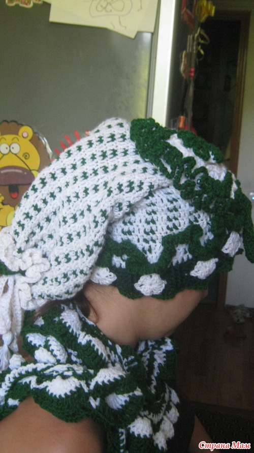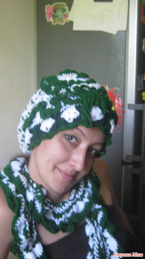 У меня длинные волосы и всегда проблема подобрать шапку. Ну вот я связала себе вот такую модель шапки волосы конечно очень хорошо спрятаны не мешаются. Ну теперь вопрос как она выглядит со стороны?