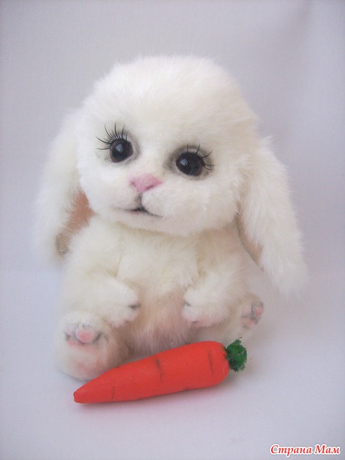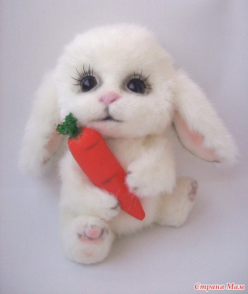 Сшита из иск. меха, мордочка - фильцевание. Морковка- текстильная.