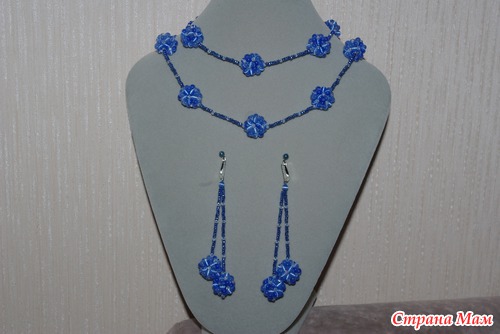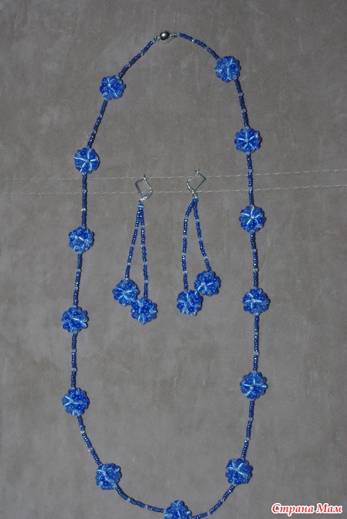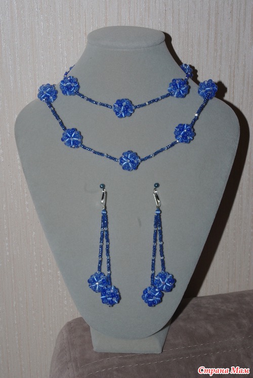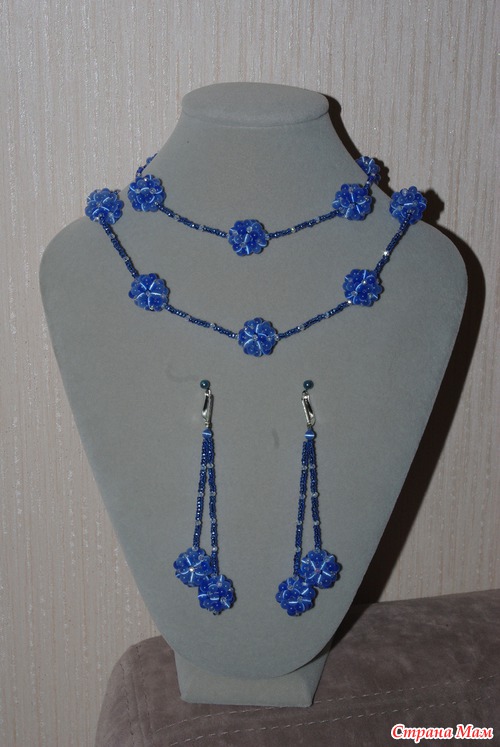 Комплект "Голубые ягодки" Сделан на заказ. Длина колье 75 см, длина сережек 7,5 см. Материалы : Бусины кошачий глаз, бусины чешские граненые, чешский бисер. Швензы и замочек - бижутерный сплав. С цветом у меня опять беда. К тому что на фото хочется добавить немного розового, чтобы придать нежно лиловый оттенок. Но вот ничего не могу поделать. Я мучилась так с одним воротничком - публиковала его раньше. Получается яркий голубой цвет, ну хоть что - делай. Вобщем живьем смотрится лучше на все 200%.