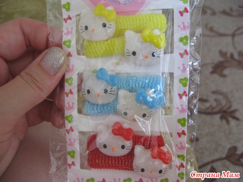 Заказывала много резиночек и заколок, а пришли только 2 набора. Набор с Китти понравился даже больше, чем на сайте, расцветки веселенькие пришли.