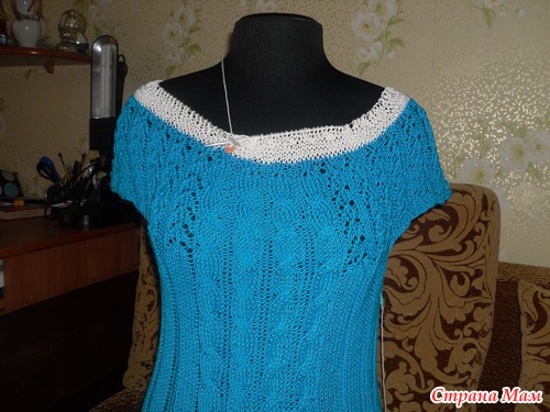 Ездила на дачу в отпуск, там довязала последние 10 рядов и хотела сделать фотосессию на природе, но дождь окутал все мои отпускные две недели, поэтому фото на мне в домашней обстановке.