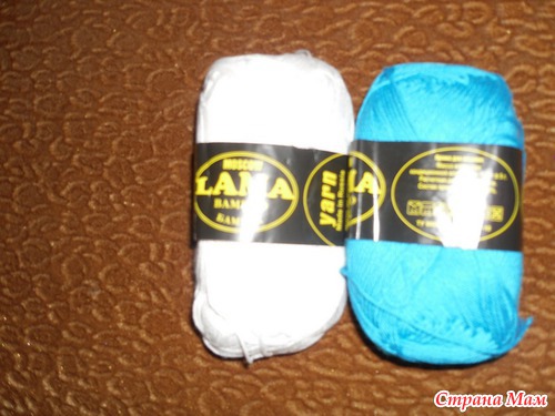 Это Лама Ярн, 100% бамбук, 220м в 100г. Вязала круговыми спицами 3,5. Решила вязать двухцветную, поскольку не хотелось докупать пряжу, а подходящая по толщине летняя была только эта. Кроме того, хотелось белое к лицу, а заодно уже и кайму внизу. Моточков было 2 белых + 3 синих. В итоге остался целый белый и меньше половины синего, т. е. на тунику пошло примерно 3,5 мотка.