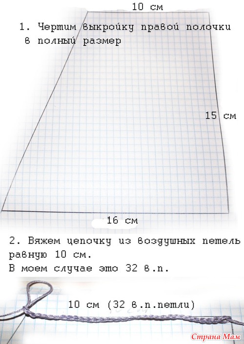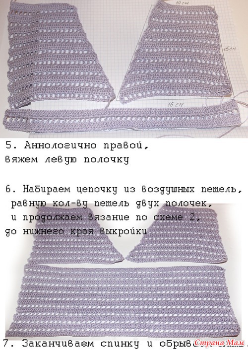 2. Схема вязания полочек и спинки жилетки.