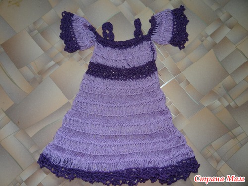 Связалось такое платье для нашей принцесски. Вязала на вилке первый раз и соединения полос в кольцо вышло неаккуратно. Кто знает как это исправить подскажите...