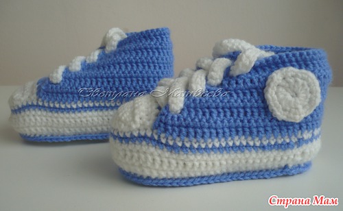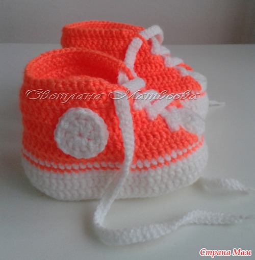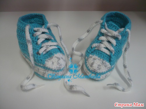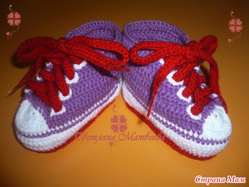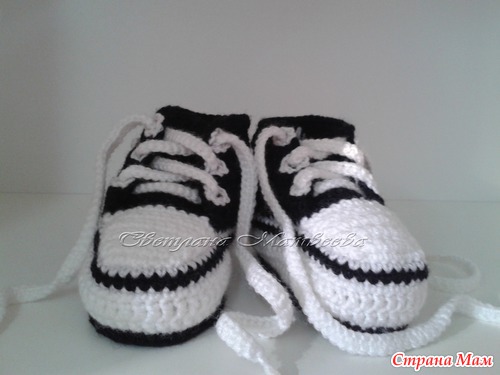 Получились в черно-белой гамме, а чтоб не скучно было заказчица предложила красные шнурки, в итоге связала 2 комплекта шнурков - белые и красные. Вам какие больше нравятся шнурки?