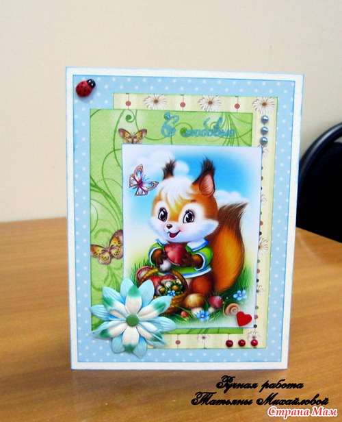 На работе коллега заказала мне открытку для своей внучки, девочка просила чтоб непременно была с белкой. Любящая бабушка сбилась с ног, искала по городу открытку но так ничего и не нашла. И тут узнала что я делаю открытки