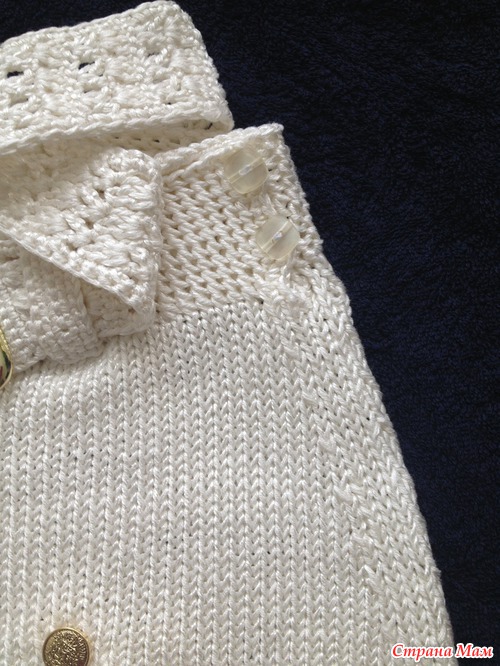 Кофточку увидела в журнале, немножко изменила выкройку, а так, в принципе, связала по схеме.